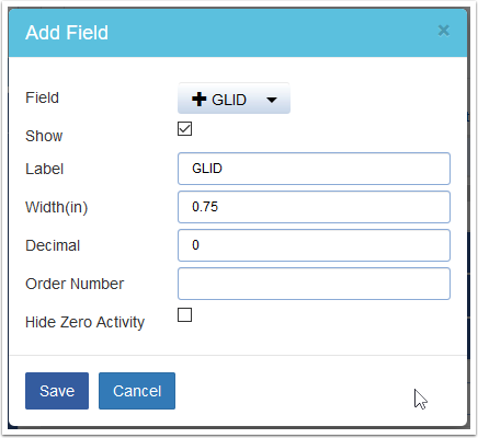 Once the user chooses a field from the drop down, the required fields (Label, Width, Decimal) populate automatically.