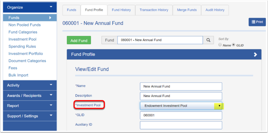 Answer: YES! You can reassign Investment Pools for funds with no fund activity, investment pool units, or pooled market value.