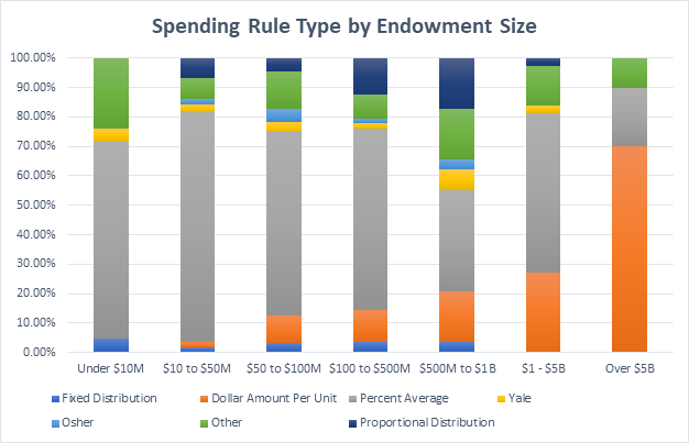 Fundriver compiled data from over 400 current clients to determine trends in different types of spending policies among different sized endowments.