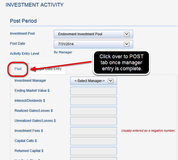 If you have the Investment Portfolio Module, instead of entering investment information at the pool level, you will enter and reconcile activity for each manager statement. (If you need to see how to enter investment activity at the pool level, please see THIS article). Watch a short video on how to post activity at the manager level or follow along in the article below.