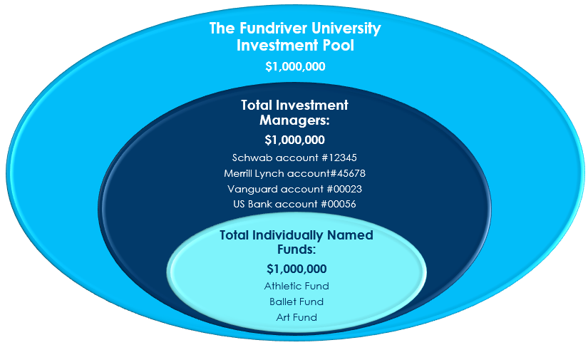 The Fundriver University Investment Pool is comprised of 100 individual named funds that are invested together within four investment account managers, held at Schwab and US Bank: